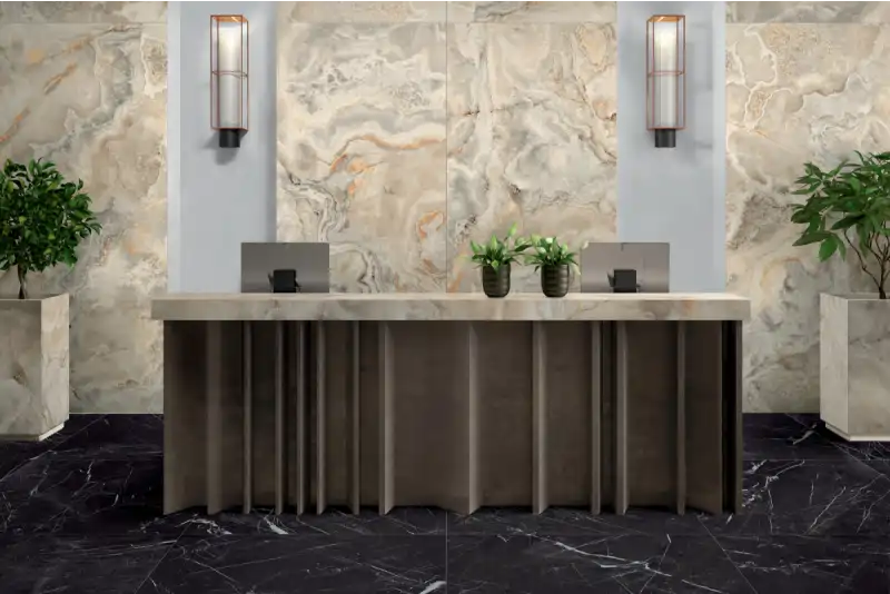 Designed to create strong visual contrast, Marmoteca Marquina Black marble elevates modern and contemporary spaces with its powerful aesthetic. The rich black tone and expressive veining make it ideal for architectural applications where design impact matters.